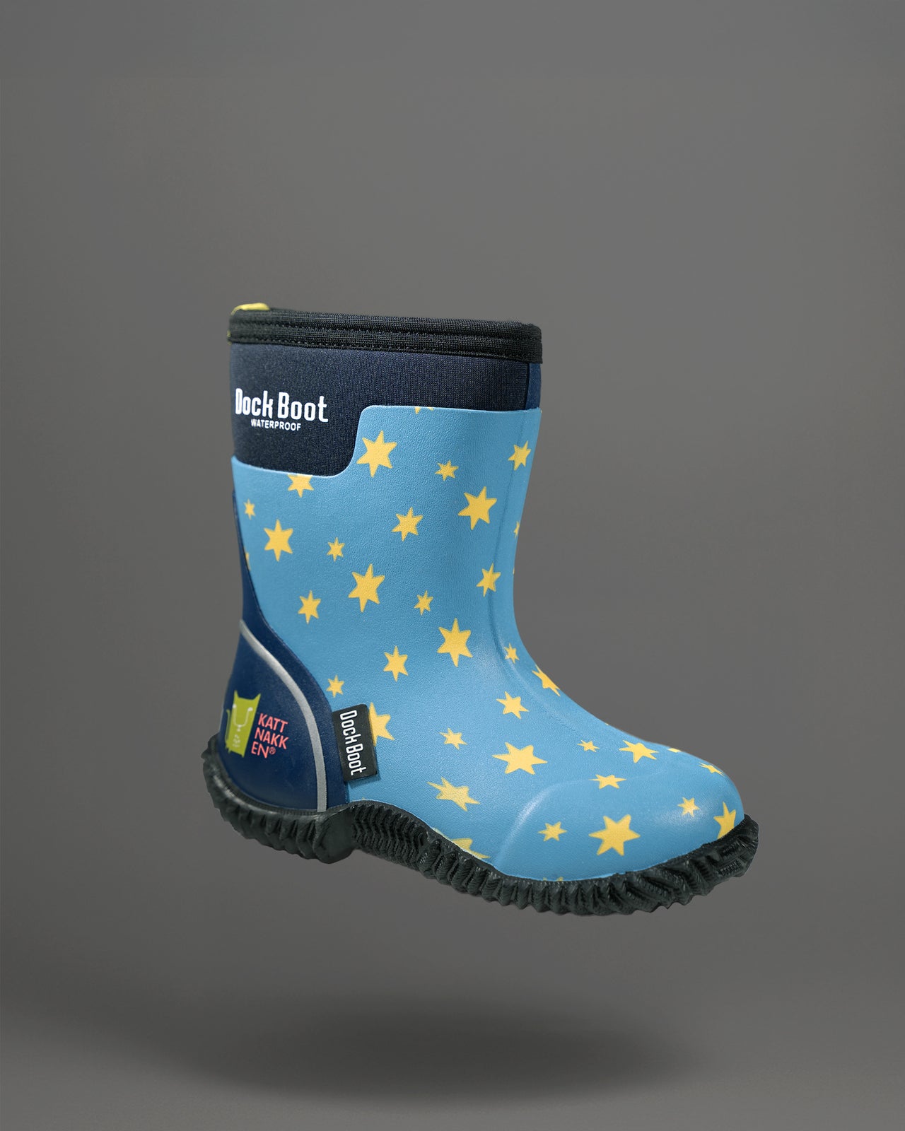 Kattnakken har saman med Dock Boot laga ein eigen kolleksjon med glade og fargerike allvêrsstøvlar for born. Støvelen er 100 % vanntett, varm og komfortabel frå -10 °C til +15 °C, og passar perfekt for barnehage, skule og fritid. Den sit godt på foten og er enkel å ta av og på, sjølv for dei minste borna.