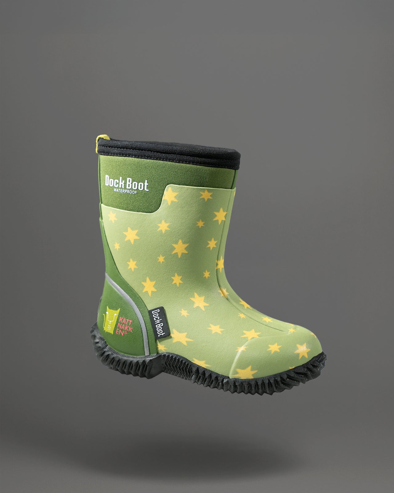 Kattnakken har saman med Dock Boot laga ein eigen kolleksjon med glade og fargerike allvêrsstøvlar for born. Støvelen er 100 % vanntett, varm og komfortabel frå -10 °C til +15 °C, og passar perfekt for barnehage, skule og fritid. Den sit godt på foten og er enkel å ta av og på, sjølv for dei minste borna.