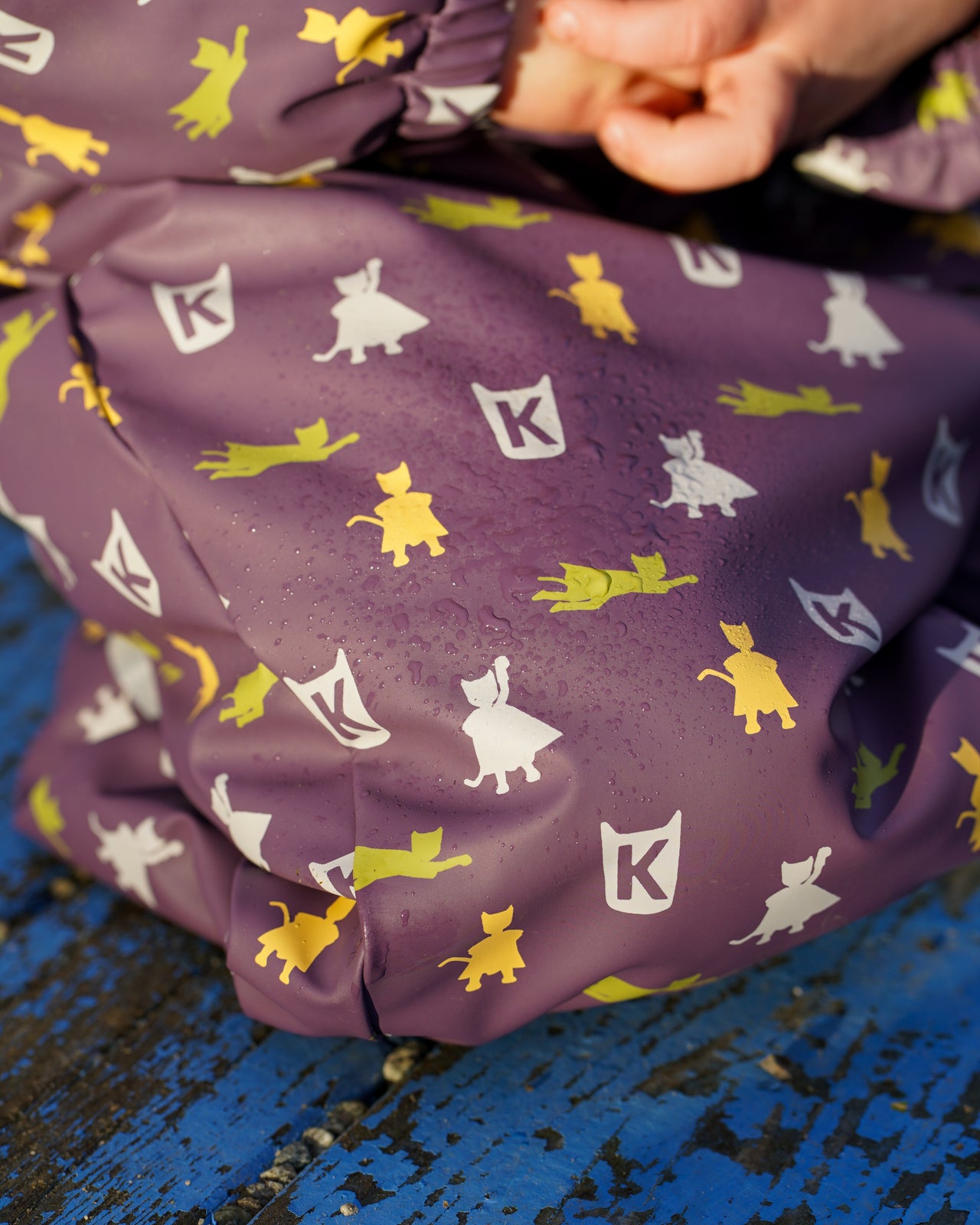 Vårt regntøy er handprinta, og det kan derfor førekome små variasjonar i printet. Dette påverkar ikkje kvaliteten eller funksjonen til regntøystoffet.