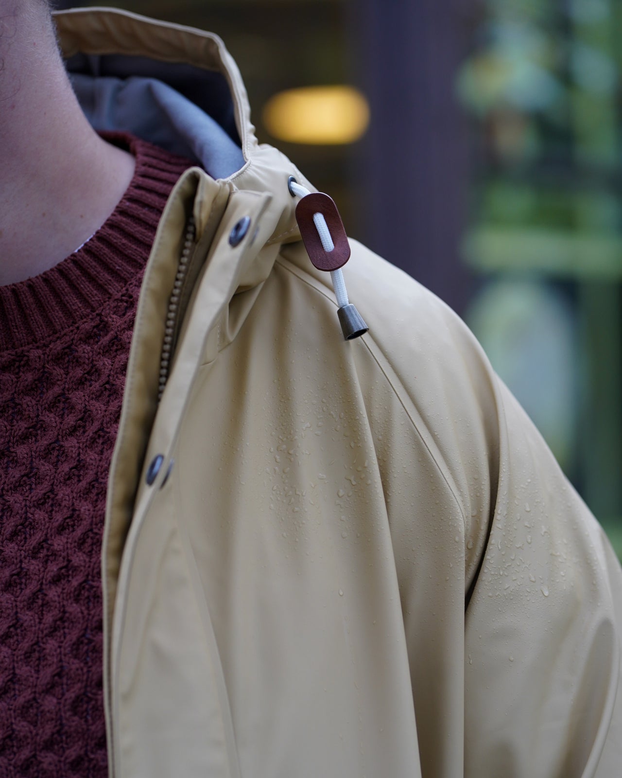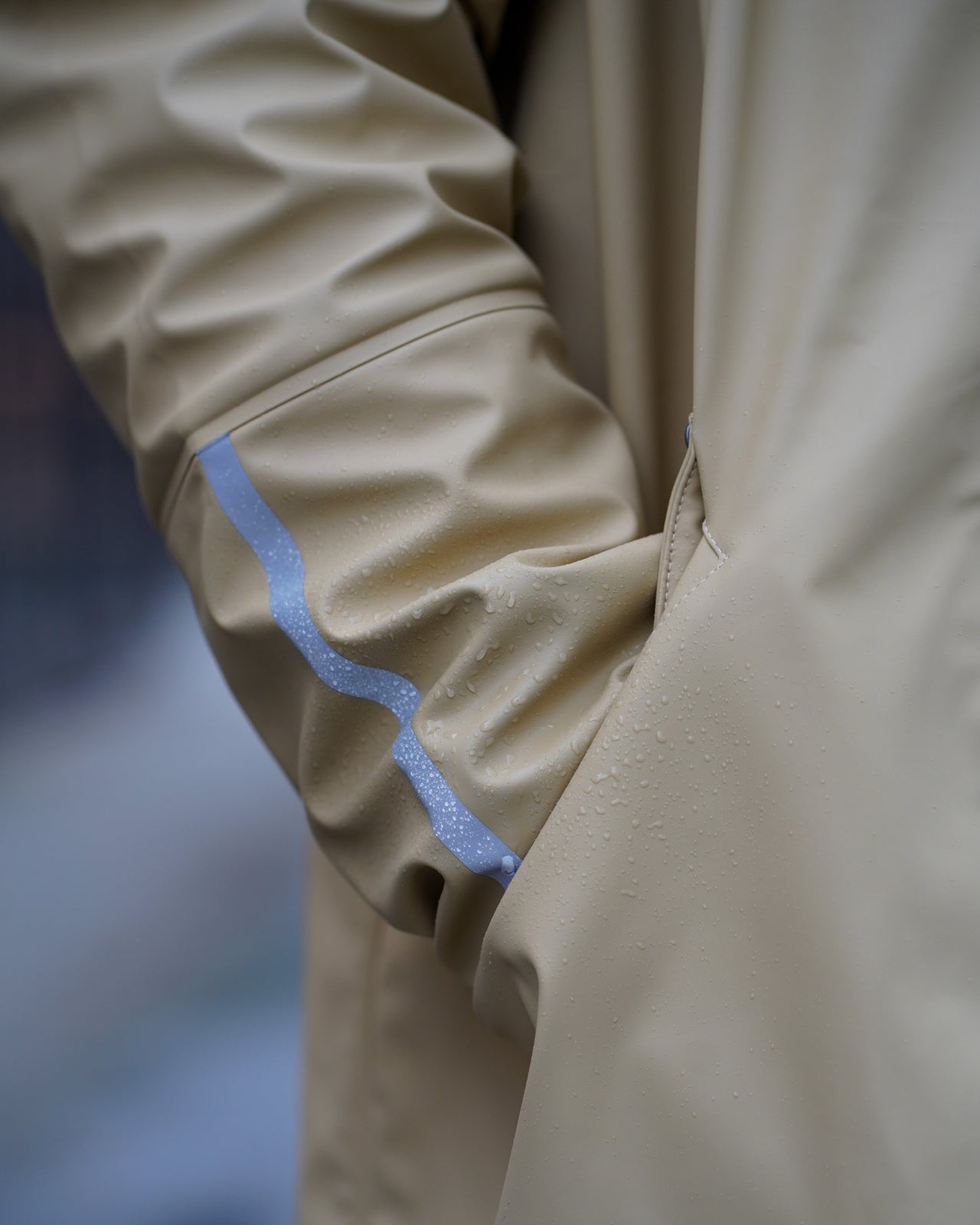 Kattnakken si klassiske unisex-regnjakke. Jakke er laga i heilt vanntett PU-materiale, med vannstopper og knappar på ermer, enkel-glidelås, knappar og mobillomme. Den har ei børsta innside som gjer den er mjuk, behageleg og mindre klam enn anna regntøy.