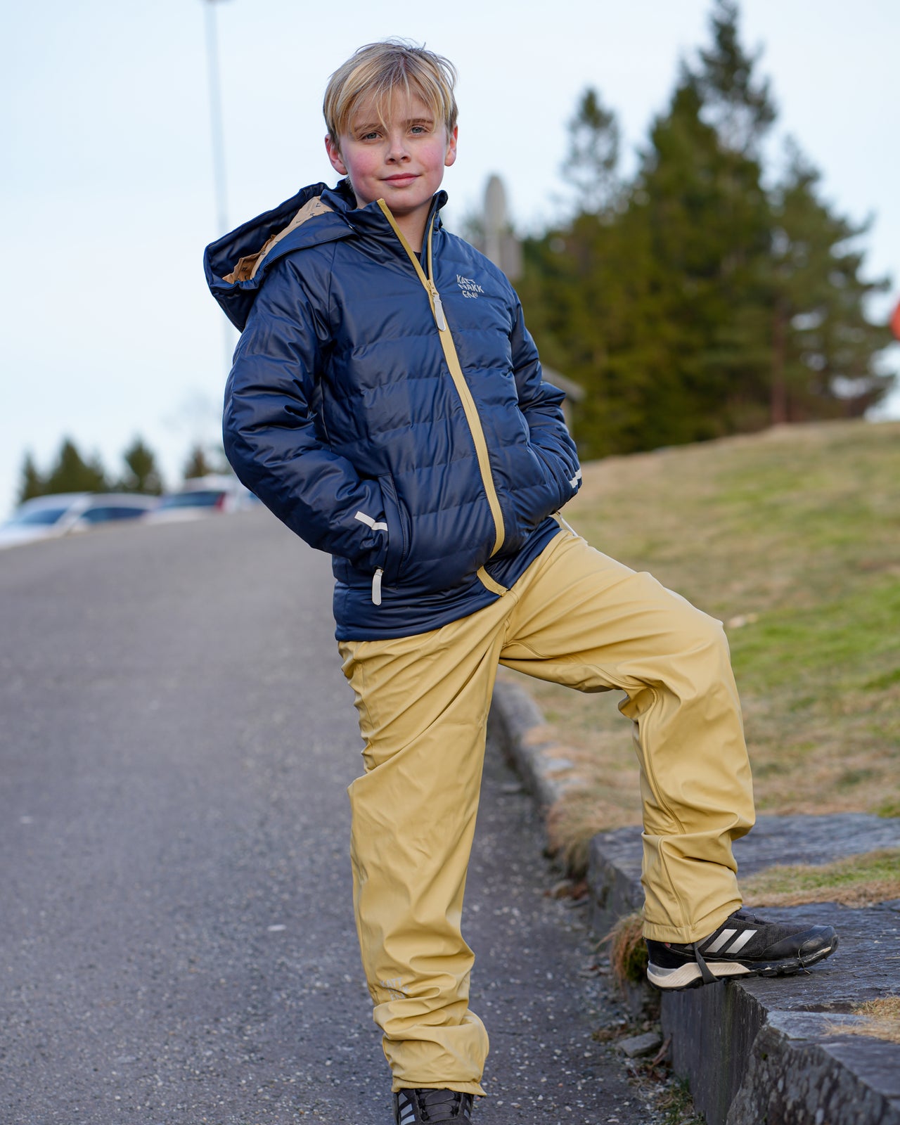 Modellane har på seg str. 11-12 år både i jakke og bukse, jenta er 150 cm høg og gutten i farge Marine er 143 cm høg og i fargen Tre 146 cm høg. Tips! Matcher perfekt med Regnbukse DIS Junior .