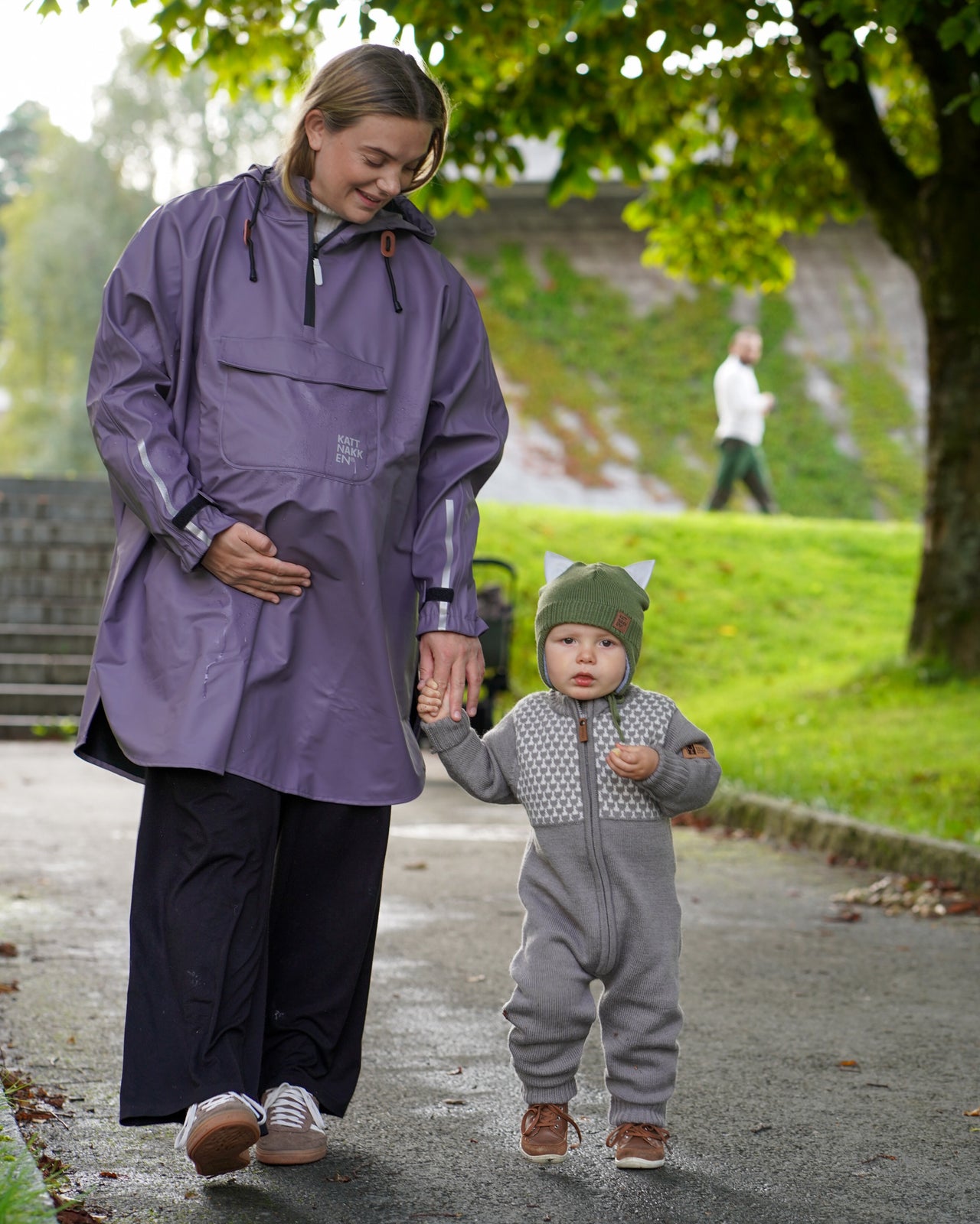 Regnponcho med ermer i mjuk PU knit som gir fint fall. Passformen er laus og størrelsane gode. Dette gjev moglegheit til betre bevegelse, utan at ponchoen flaksar avgårde om du tildømes er ute å syklar.