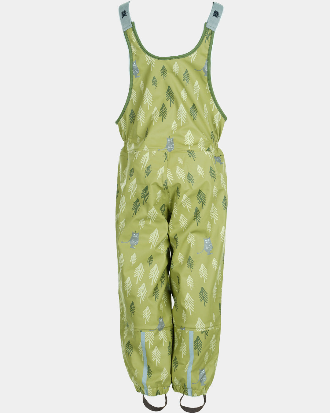 Her er både jakke og bukse i same gode PU kvalitet, med børsta innside. Det er mjuk fleece på insida av kragen og vannstopper finst i både ermer og bein. Her har me slitesterk gummistrikk under føtene, refleksar på jakke og bukse, og mykje moro i print og andre detaljar. Sveisa saumar og sikker hette som er både avtagbar og regulerbar.