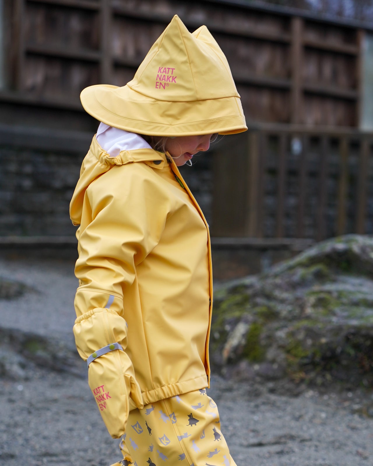 Sydvest i mjuk kvalitet (PU knit) med fleecefôr og øyreklaffar. Fargar matchar kolleksjon 2026 Superkatten. Sydvest er eit genialt plagg på regnvêrsdagar. Eit lite tak som skygger for øs pøs regnvêr.