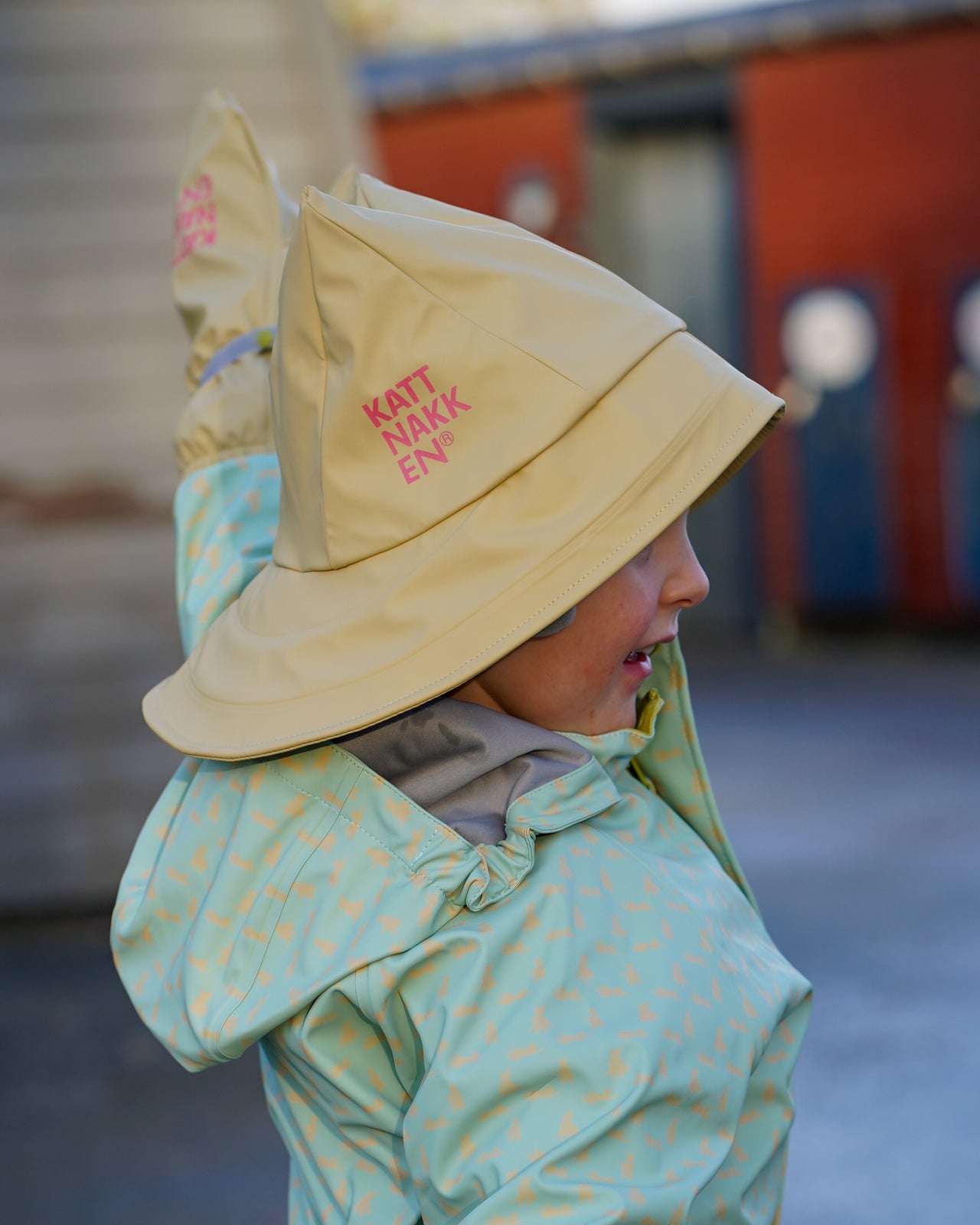 Sydvest i mjuk kvalitet (PU knit) med fleecefôr og øyreklaffar. Fargar matchar kolleksjon 2026 Superkatten. Sydvest er eit genialt plagg på regnvêrsdagar. Eit lite tak som skygger for øs pøs regnvêr.