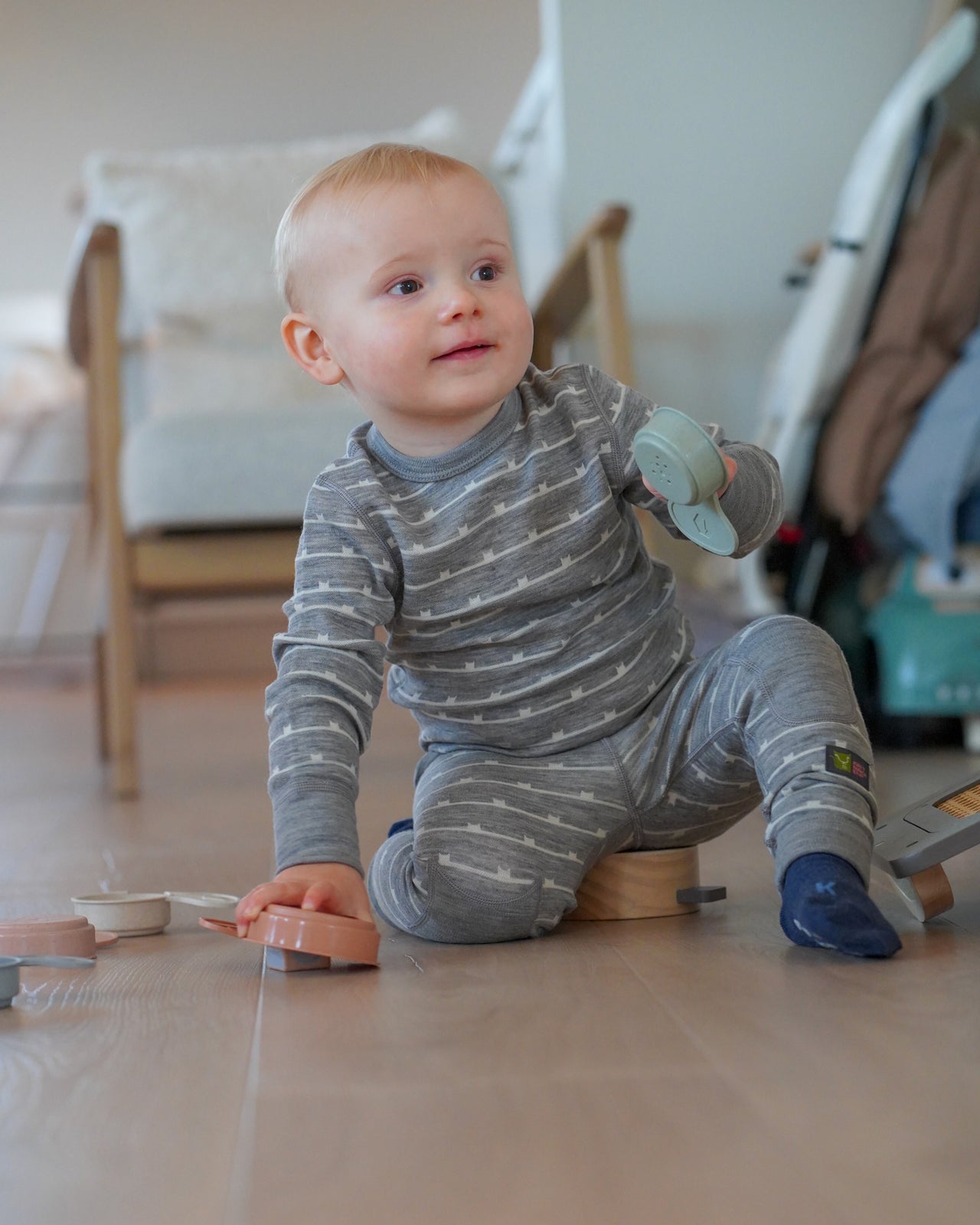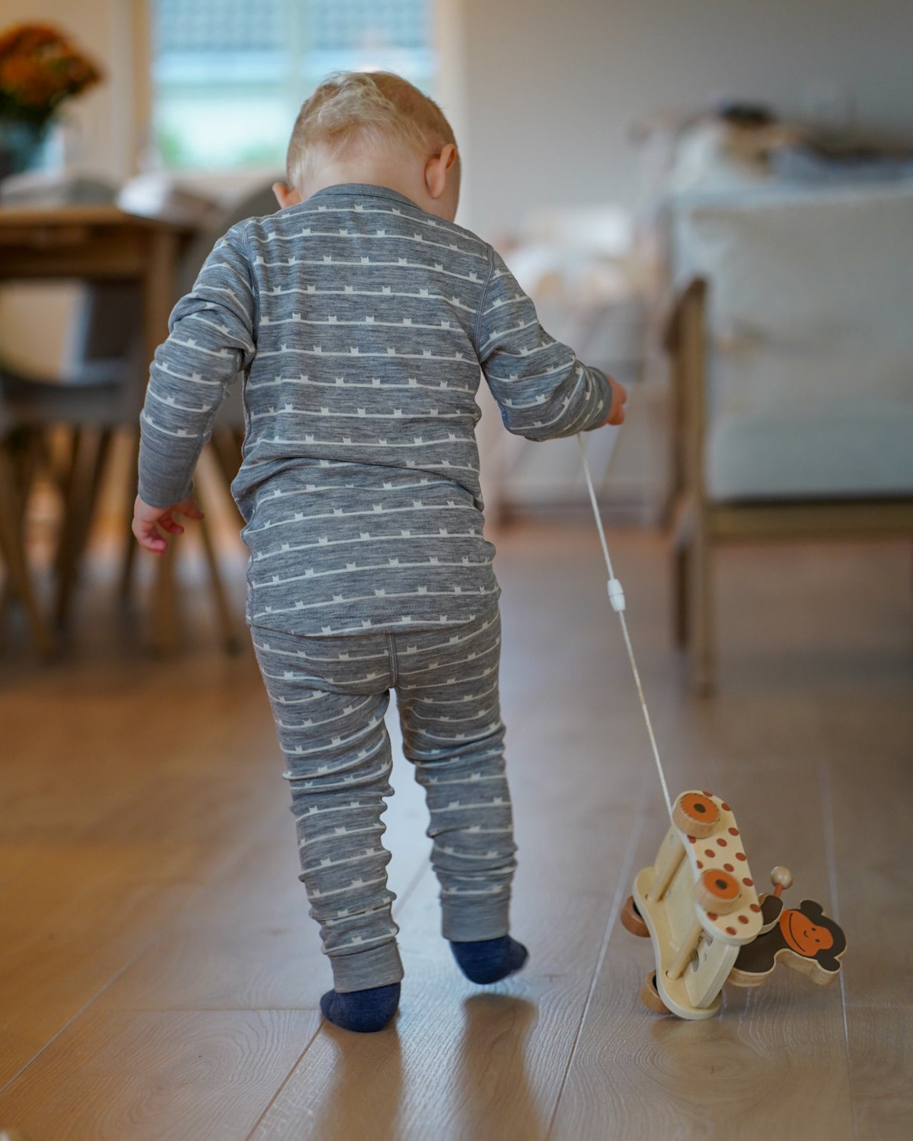 Fleire ulltrådar gir og meir varme og isolasjon, så Stjerneulla er perfekt både som innerlag under regntøyet og som koseplagg til leik inne i stova eller i barnehagen.
