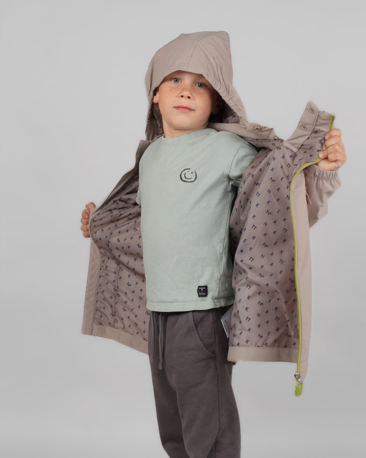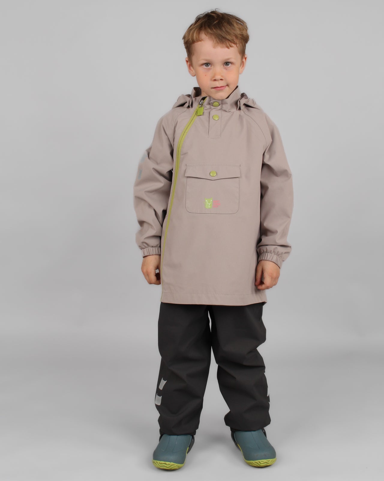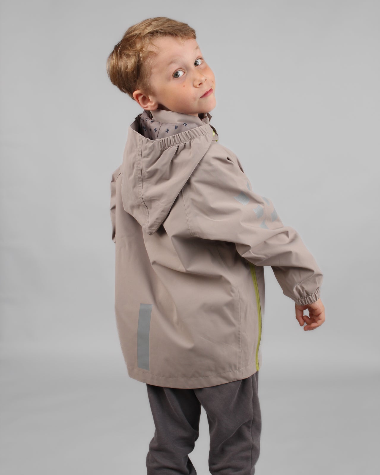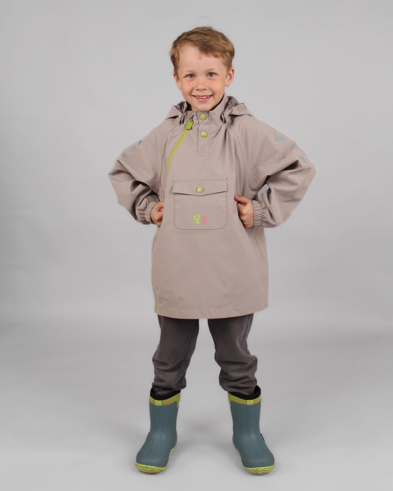 Mjuk og behagleg fleirbruksjakke som passar frå bornet sitt i vogna til dei spring rundt i barnehage og skule. Også perfekt for fjelltur, sykkeltur og ute på sjøen. Jakka passar fint saman med vindbuksa vår for barn. Jakka er laga primært for å være vindtett, men har også vannavvisende eigenskapar. Den er også pustende. Primært vår, sommar og tidleg haustjakke men, kan brukast som skalljakke i vintersesongen med rette underlaget. Eit godt gjennomtenkt og høgt elska produkt av produktutvikler her på huset. Jakke er i resirkulert Oxford polyester, den har lomme på brystet, refleksar framme og bak, avtagbar hette med regulerbar med refleks, 12 000 mm vannsøyle med teipa saumar. Deler av dette produktet er laget av resirkulerte polyester fiber.